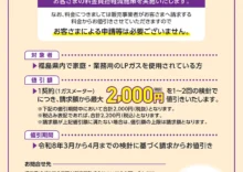福島県LPガス料金高対策に関わる料金値引きを実施いたします。
