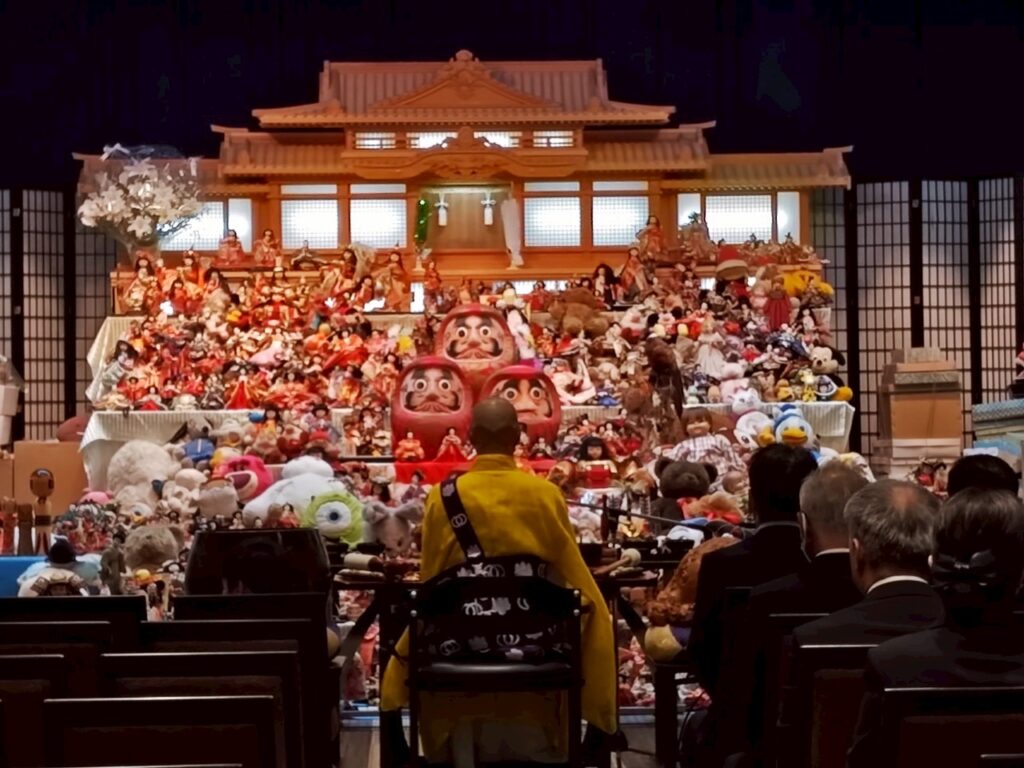 本年も2会場において、約3,000体に及ぶ人形・ぬいぐるみ、そして提灯をお持ちいただき、僧侶の読経のもと心を込めてご供養いたしました。